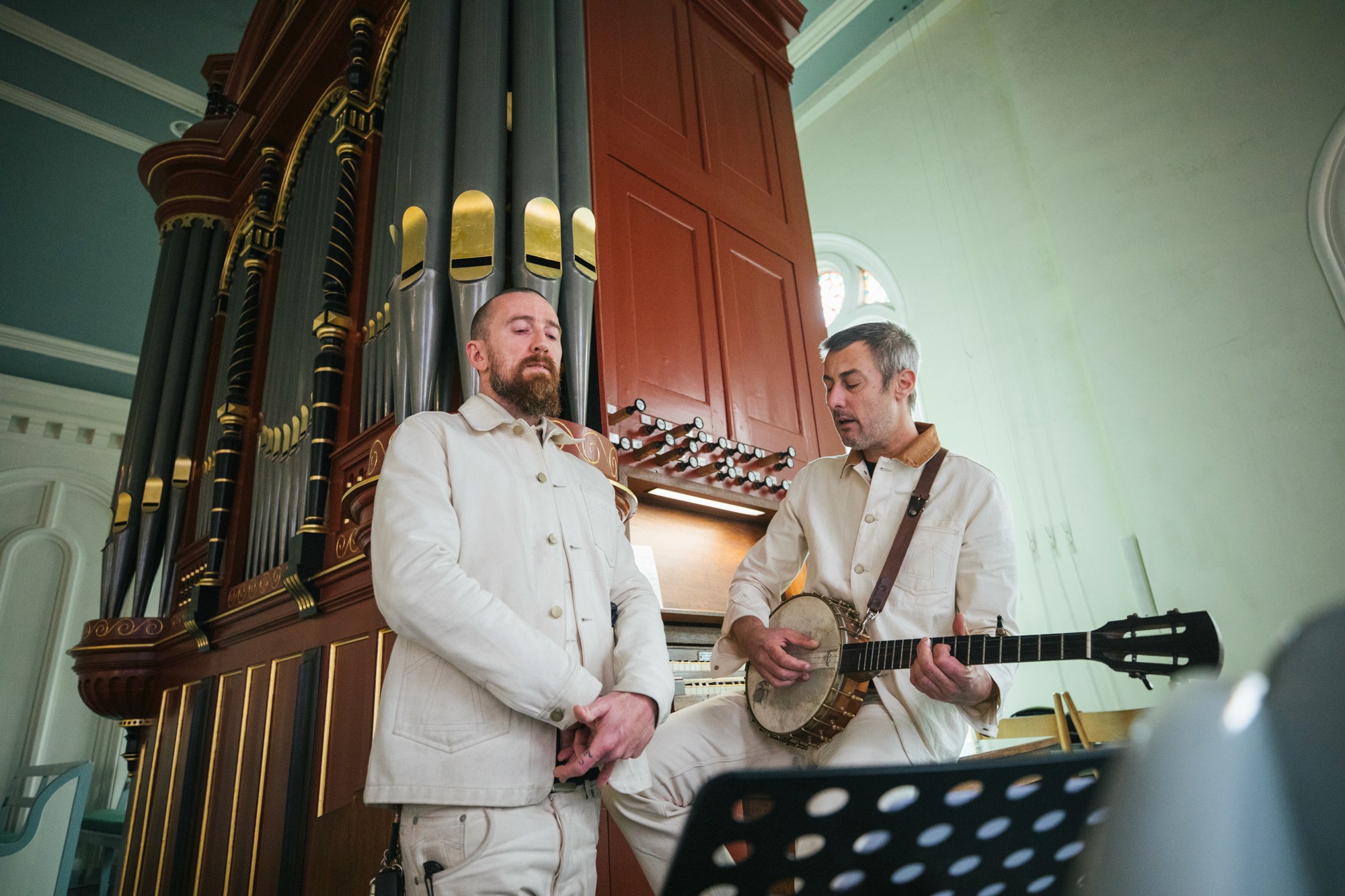 Sonically, Sober Maal is a haunting, droning, emotionally rich journey that feels rooted in a bygone world while still sounding wholly original, and has a melancholy air yet retains a hopeful feel. Colin and Tonnie’s vocals blend with the choir and a pared-back selection of instruments including a banjo, piano, hurdy gurdy and the powerful central organ – all intermingling with the sounds and echoes of the church.